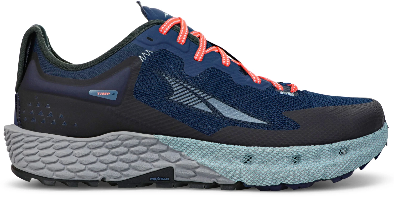 L’Altra Timp 4 avec semelle extĂ©rieure MaxTrac et motif de crampons multidirectionnel pour une traction adhĂ©rente sur tous les trails. Construction actualisĂ©e du col pour un ajustement plus souple et de meilleure qualitĂ©. Semelle intermĂ©diaire Altra EGO MAX avec superposition de mesh.