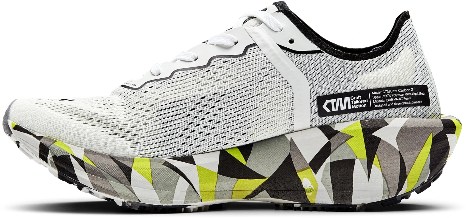La chaussure de course Ă pied CTM Ultra 2 Carbon pour femmes apporte un vent de fraĂźcheur sur la scĂšne de la course Ă pied ! Cette chaussure sophistiquĂ©e se caractĂ©rise par un design accrocheur et stylĂ© et par une force de rebond particuliĂšrement Ă©levĂ©e, rendue possible par la structure innovante et rĂ©active de la semelle. Les semelles intermĂ©diaires ultralĂ©gĂšres et durables en Vault Foam, avec un insert en carbone adaptĂ©, assurent ainsi une restitution efficace de l’Ă©nergie. De plus, la robuste semelle extĂ©rieure Ultra-Trac de la chaussure longue distance offre une excellente adhĂ©rence et un roulement optimal sur les routes et les terrains plats grĂące Ă sa grande surface de contact et Ă son systĂšme de crampons bien pensĂ©. Conçu pour une utilisation de plus de 800 kilomĂštres de course, le CTM Ultra Carbon est le compagnon idĂ©al si tu t’entraĂźnes pour ton prochain marathon ou si tu participes Ă des compĂ©titions de distance extrĂȘme.