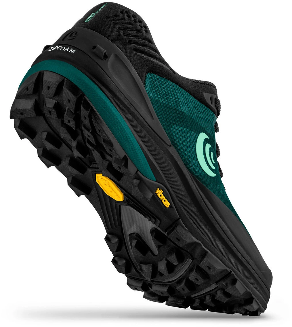 La semelle intermĂ©diaire ZipFoam en 3 parties est associĂ©e Ă un contrefort externe en TPU au niveau du talon pour un guidage lĂ©ger tout au long du cycle de course. La semelle extĂ©rieure Vibram Megagrip offre une traction et une adhĂ©rence optimales, notamment dans des conditions humides et glissantes. Une plaque de roche ESS Ă l’avant du pied offre une protection supplĂ©mentaire sur les terrains techniques.